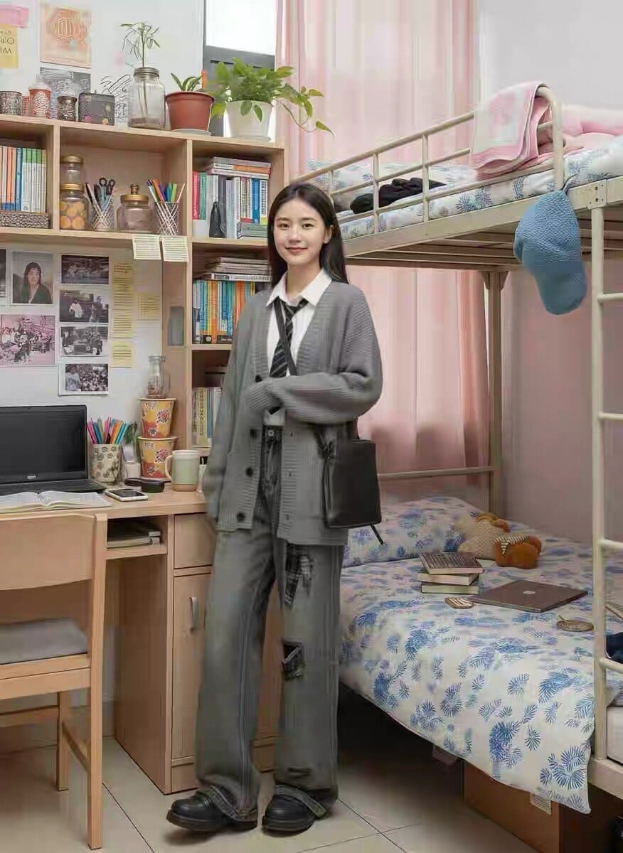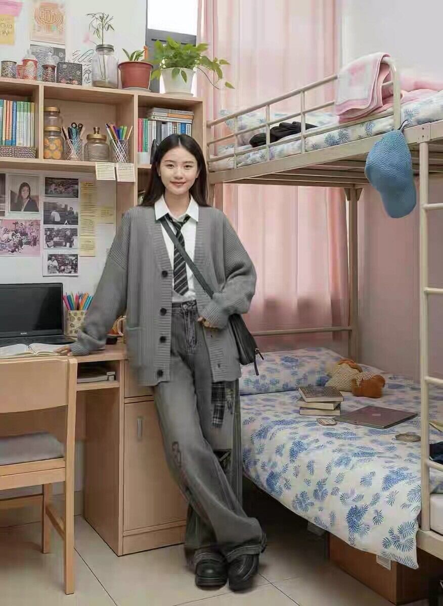 ジーンズ、白シャツ、セーター3点セット