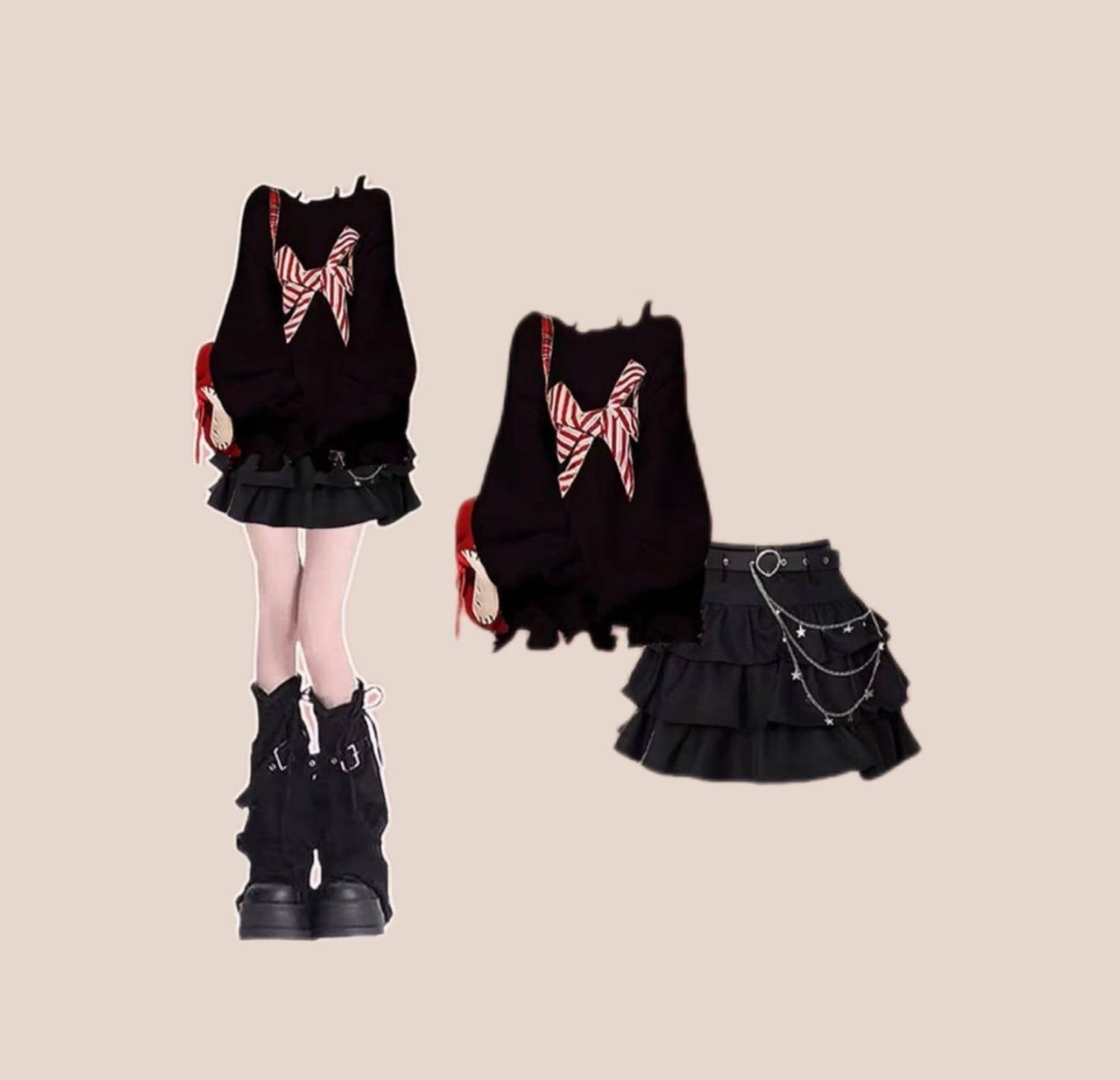 ニット、ミニスカ、レッグオーマー