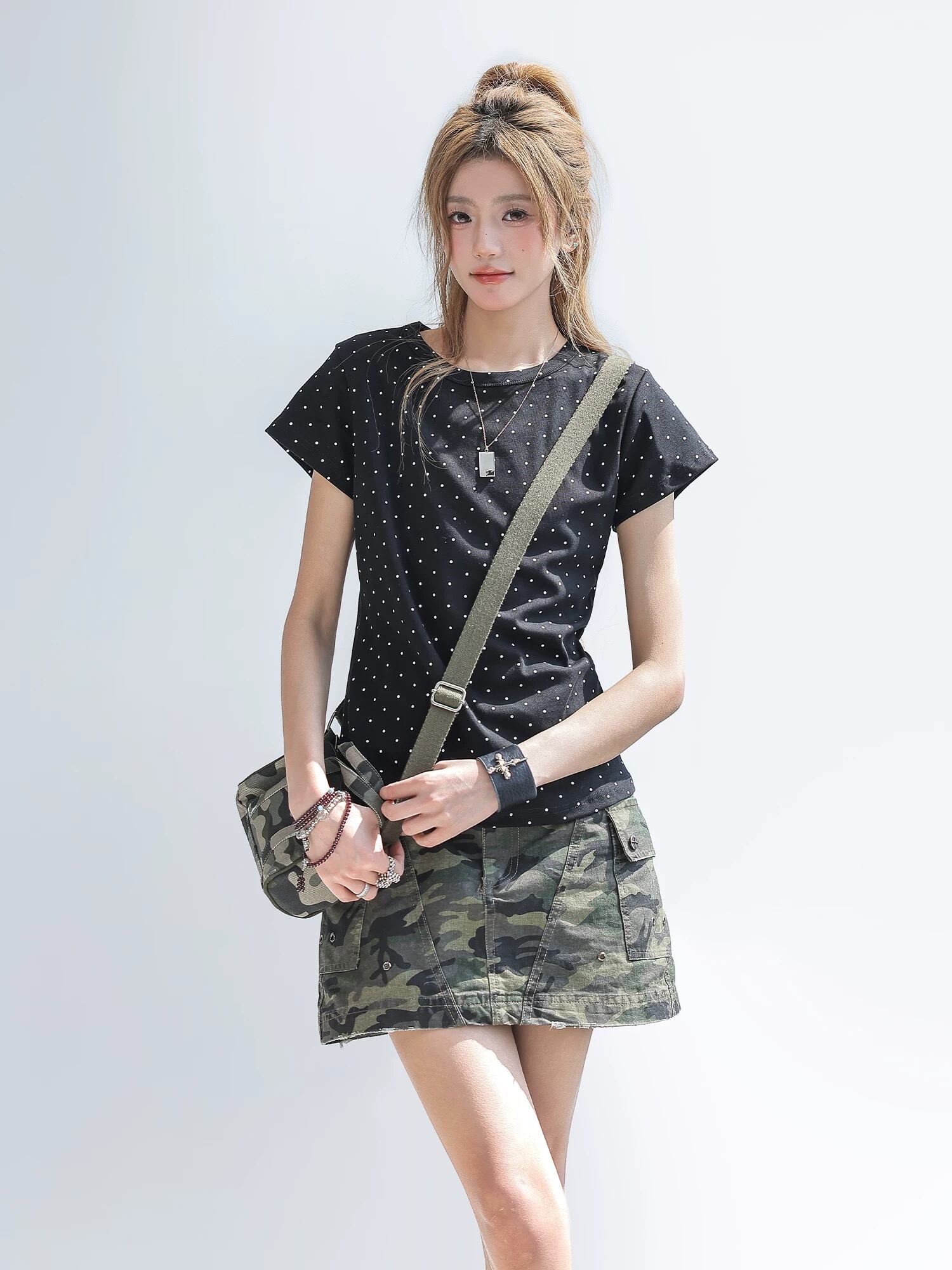 2026韓国風ドッド柄トップスST26-069